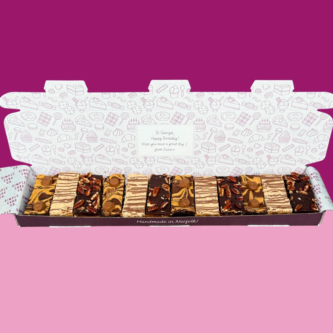 Our brownies and bakes are packed full of chocolate, which gives them a shelf life of a good 10 days on arrival. Ā Keep them wrapped up tight, or freeze if you want to keep them longer!
